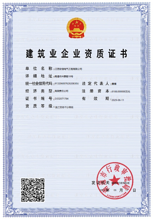 在創(chuàng)業(yè)之初,公司就堅(jiān)持高起點(diǎn)的戰(zhàn)略思路,廣納賢才,集聚行業(yè)精英,創(chuàng)新發(fā)展,做優(yōu)企業(yè)品牌。現(xiàn)已取得:承裝二級(jí)、承修二級(jí)、承試二級(jí),電力工程施工總承包二級(jí),輸變電工程專業(yè)承包二級(jí),建筑工程施工總承包二級(jí),建筑機(jī)電安裝專業(yè)承包二級(jí),地基基礎(chǔ)專業(yè)承包二級(jí)資質(zhì)證書,并通過了質(zhì)量、環(huán)境、職業(yè)健康和安全管理體系認(rèn)證,確保各項(xiàng)工作有序管控。